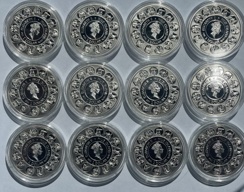 Набор серебряных монет 1 доллар Серии: Знаки зодиака Альфонса Мухи.,28,28г.,2011г.,Ag 925
