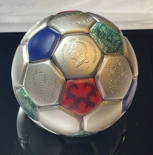Серебряная монета 10 долларов Мяч, Чемпионат Мира по футболу ФИФА 2026 Соломоновы острова Ag 999, 93,3г., 2026г.