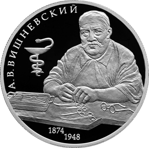 Серебряная монета 2 рубля "Хирург А.В. Вишневский, к 150-летию со дня рождения" Ag 925, 15,55г., 2024г., Proof