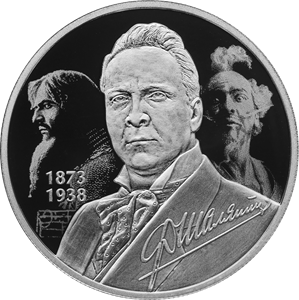рельефное изображение портрета Ф.И. Шаляпина на фоне выполненных в технике лазерного матирования изображений его сценических образов и фрагмента нотного стана; внизу справа – факсимиле подписи певца, слева в две строки – годы жизни: «1873» и «1938».