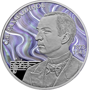 Серебряная монета 2 рубля "Композитор С.В. Рахманинов, к 150-летию со дня рождения" Ag 925, 15,55г., 2023г., Proof
