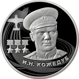 Серебряная монета 2 рубля "И.Н. Кожедуб" Ag 925, 15,55г., 2022г., Proof