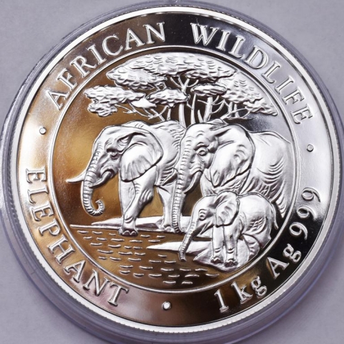 Серебряная монета 2000 шиллингов Слоны Сомали 1 кг 2013 г. Ag 999
