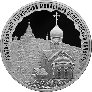 Серебряная монета 3 рубля "Свято-Троицкий Холковский монастырь, Белгородская область" 2022г., 31,1 г. 925 проба, ПРУФ