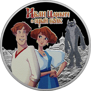 Серебряная монета 3 рубля "Иван Царевич и Серый Волк" 2022г., 31,1 г. 925 проба, ПРУФ