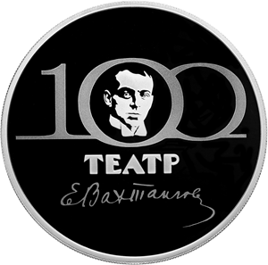 Серебряная монета 3 рубля "100-летие Государственного академического театра имени Евгения Вахтангова" 2021г., 31,1 г. 925 проба, ПРУФ