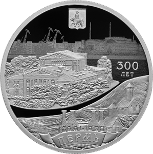 Серебряная монета 3 рубля "300-летие основания г. Перми" 31,1г., Ag 925, Proof, 2023г.