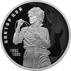 Серебряная монета 3 рубля "Творчество Виктора Цоя" 31,1г., 2023г., Proof, Ag 925
