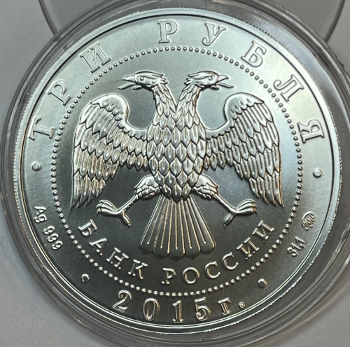 Набор серебряных монет 3 рубля "Георгий Победоносец" в спец исполнении, 2015 год, ММД