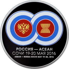 Серебряная монета 3 рубля "Саммит Россия - АСЕАН" 2016г., 31,1г.,Ag 925,ПРУФ