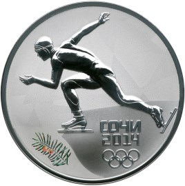 Серебряная монета 3 рубля "Сочи 2014" - "Скоростной бег на коньках" СПМД, 31,1г.