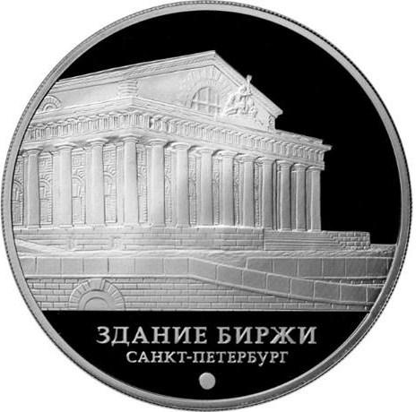 Серебряная монета 3 рубля "Здание Биржи, г. Санкт-Петербург", 31,1 гр., 2016 г.