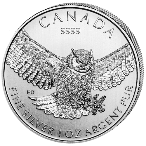 Серебряная монета Канады 5 долларов "Сова" 1oz, 31,1г., Ag 9999, 2015 год