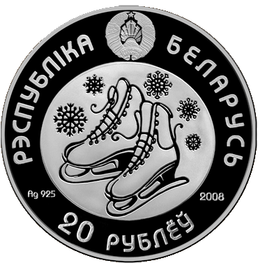 Аверс: вверху – рельефное изображение Государственного герба Республики Беларусь; в центре в овале – изображение фигурных коньков в обрамлении снежинок; под ним указаны год чеканки, проба сплава; по кругу надписи: в верхней части – РЭСПУБЛIКА БЕЛАРУСЬ; в нижней – 100 РУБЛЁЎ и 20 РУБЛЁЎ на монетах соответствующих номиналов.