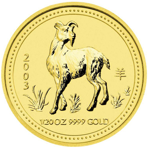 Золотая монета Австралии 25 долларов "Лунный календарь-2- год Козы" 2003 год 1/4 унции, 7,78г.