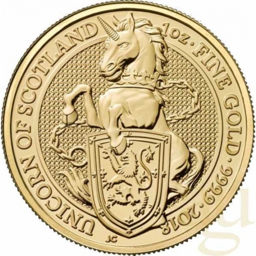 Золотая монета Великобритании 100 фунтов "Единорог" 2018 год 1 OZ