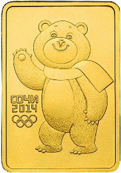 Золотые монеты (Леопард, Мишка, Зайка) Сочи СПМД 100 рублей 15,55 грамм